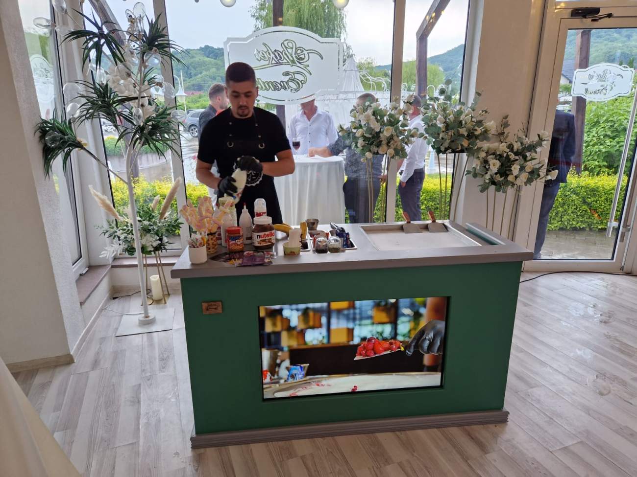 2. Spectacolul Preparării: Procesul de fabricație este vizual atractiv. Ingredientele sunt amestecate pe o placă rece, apoi rulate în fața ochilor invitaților. Acest "show" de preparare adaugă o dimensiune interactivă la eveniment.